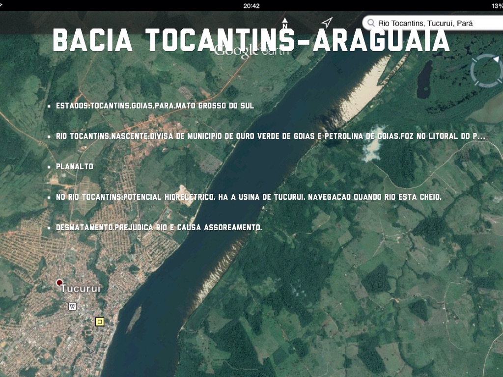 No rio tocantins:potencial hidreletrico. Ha a usina de tucurui. Navegacao quando rio esta cheio.