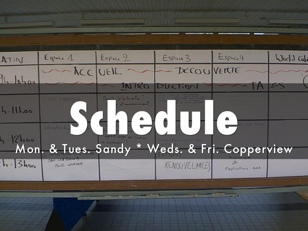Mon. & Tues. Sandy * Weds. & Fri. Copperview