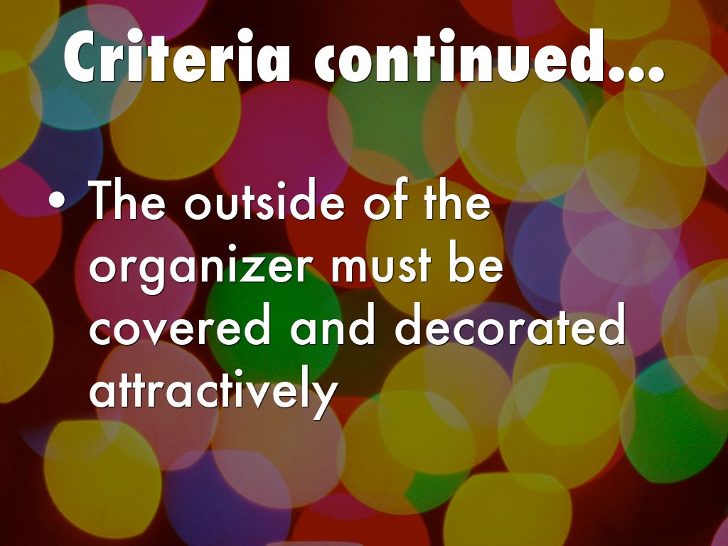 The shape of the organizer must be rectangular but individual compartments may be any shape