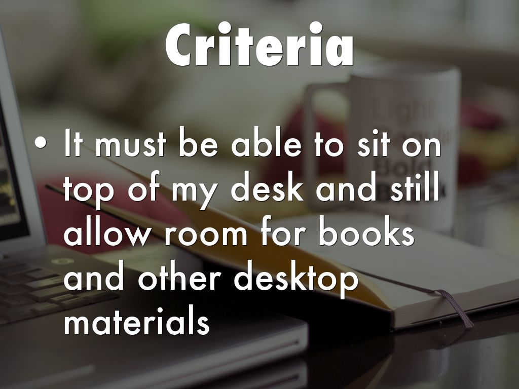 It must be able to sit on top of my desk and still allow room for books and other desktop materials