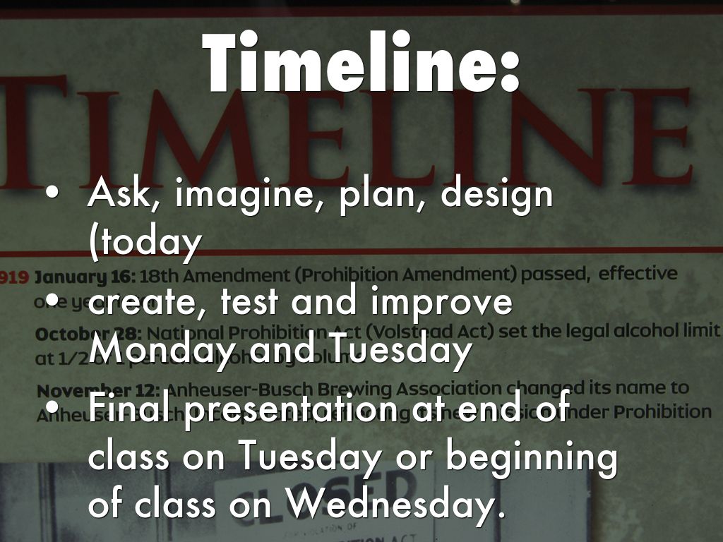 Final presentation at end of class on Tuesday or beginning of class on Wednesday.
