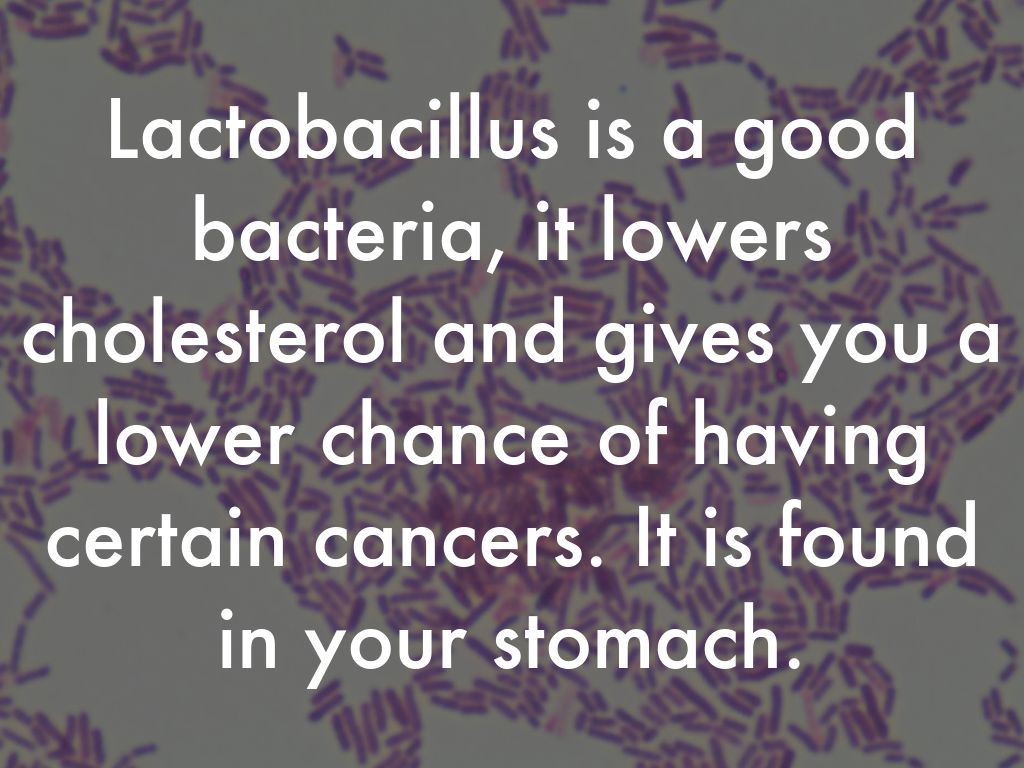 Lactobacillus is a good bacteria, it lowers cholesterol and gives you a lower chance of having certain cancers. It is found in your stomach.
