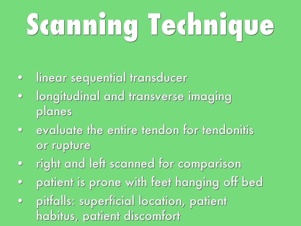 • pitfalls: superficial location, patient habitus, patient discomfort