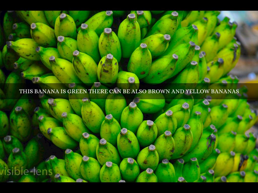 THIS BANANA IS GREEN THERE CAN BE ALSO BROWN AND YELLOW BANANAS
