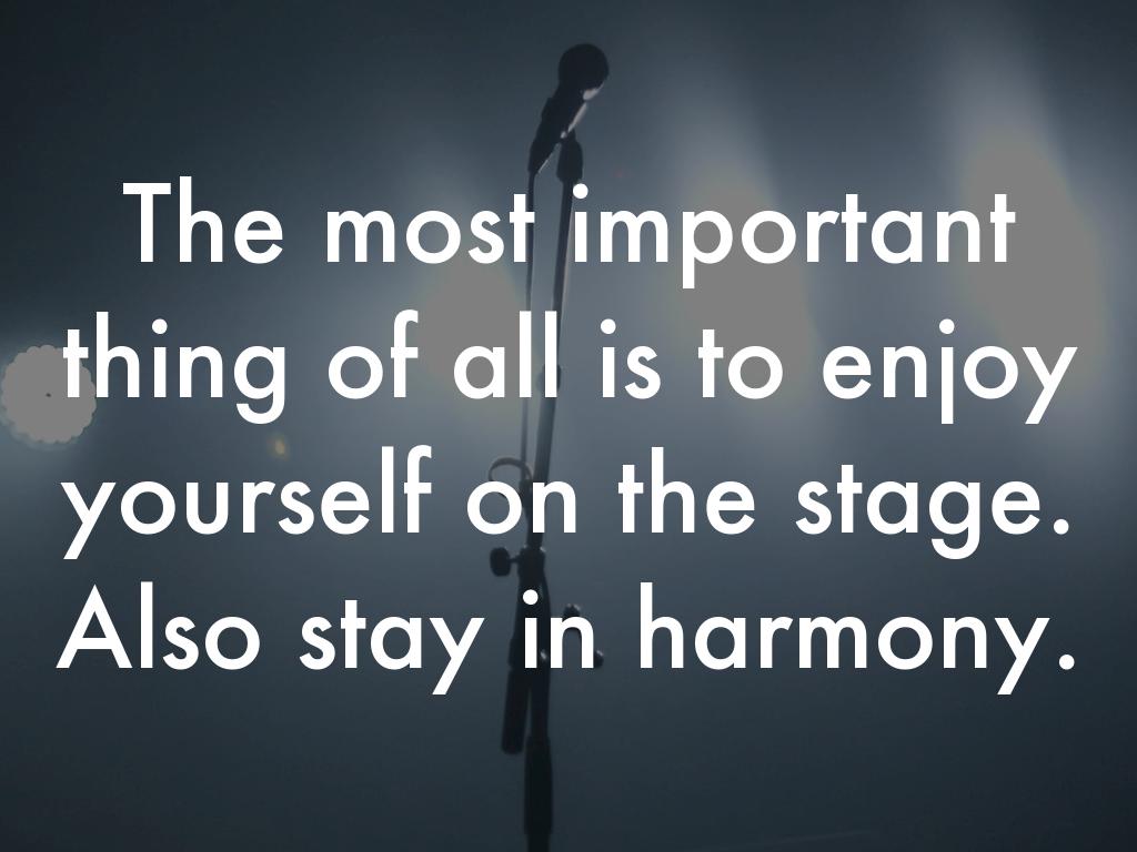The most important thing of all is to enjoy yourself on the stage. Also stay in harmony.