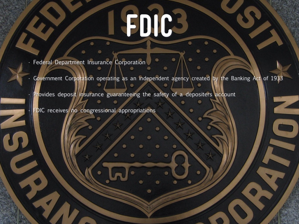 • Government Corporation operating as an independent agency created by the Banking Act of 1933