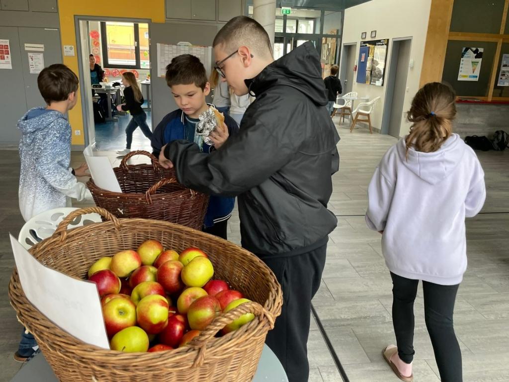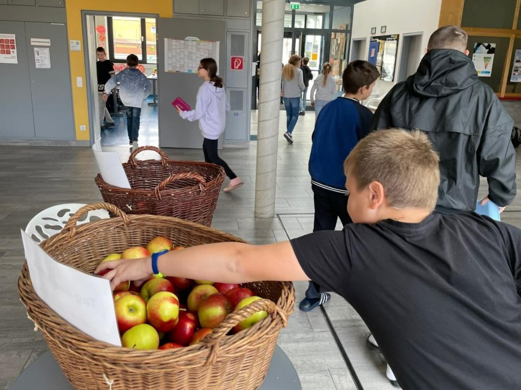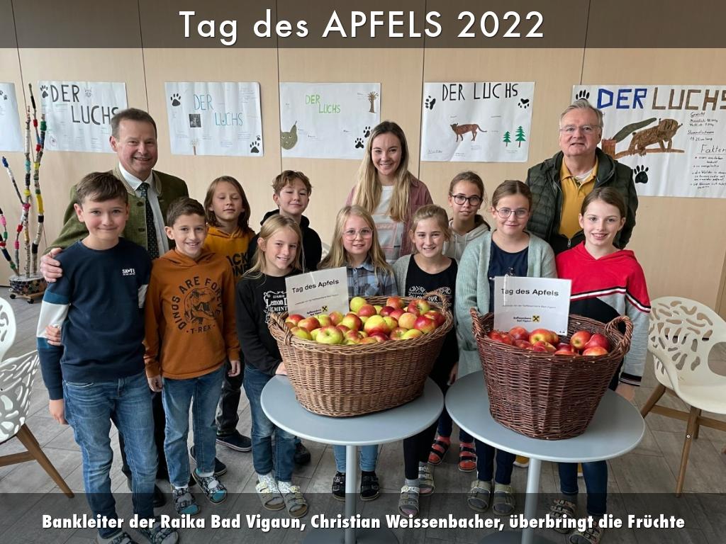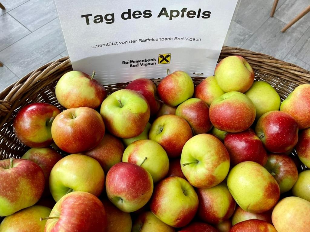 Bankleiter der Raika Bad Vigaun, Christian Weissenbacher, überbringt die Früchte