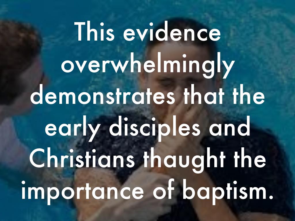 This evidence overwhelmingly demonstrates that the early disciples and Christians thaught the importance of baptism.