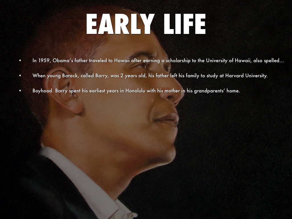 Family background. Barack Hussein Obama, Jr., was born on Aug. 4, 1961, in Honolulu. His first name comes from the Swahili word baraka, which means blessing.
