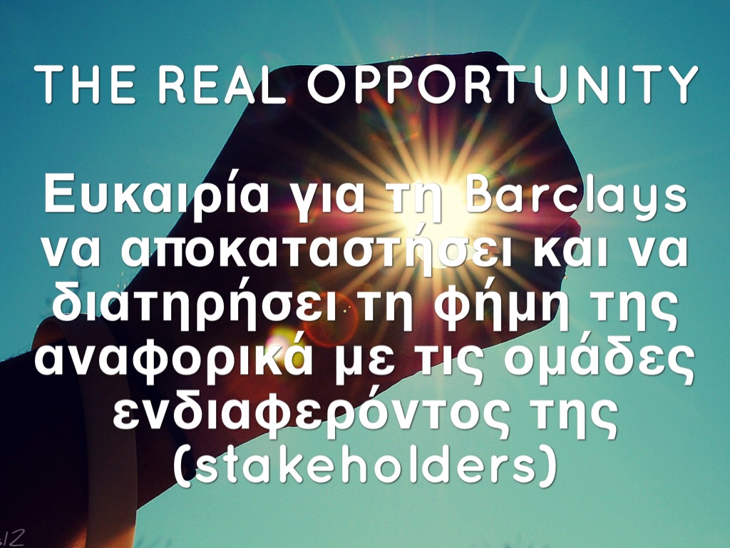 Ευκαιρία για τη Barclays να αποκαταστήσει και να διατηρήσει τη φήμη της αναφορικά με τις ομάδες ενδιαφερόντος της (stakeholders)