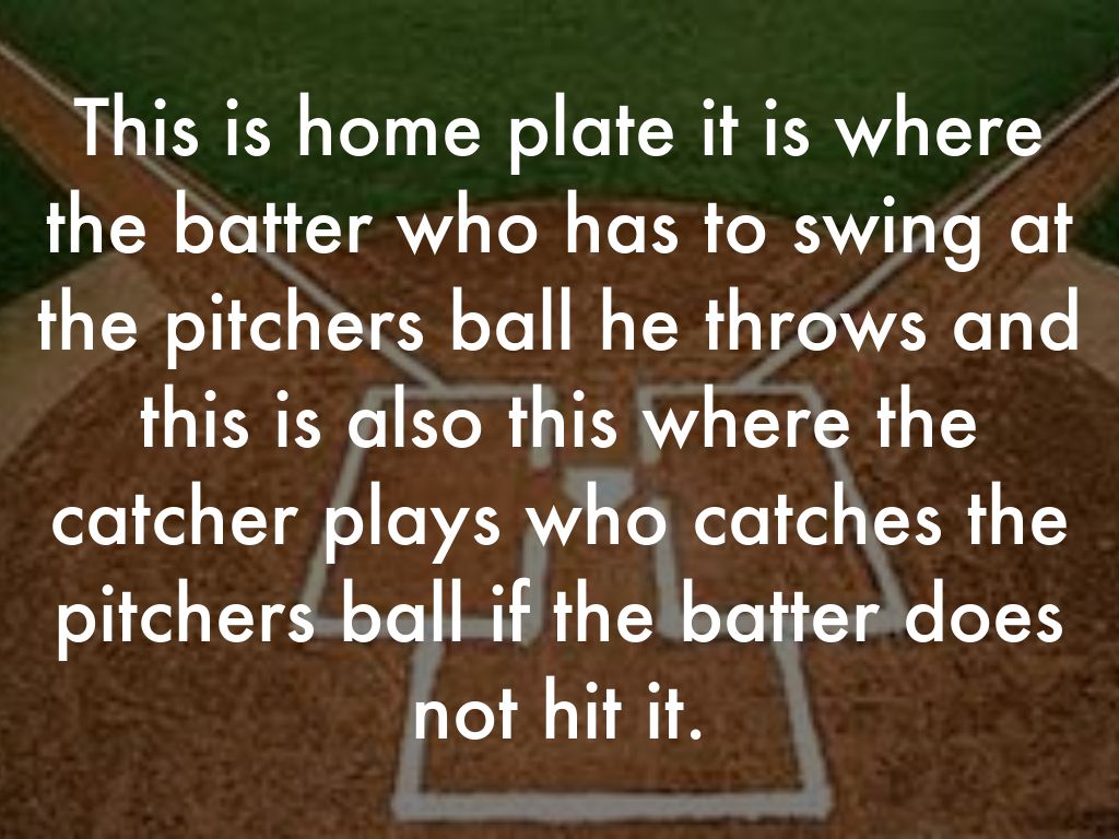 This is home plate it is where the batter who has to swing at the pitchers ball he throws and this is also this where the catcher plays who catches the pitchers ball if the batter does not hit it.