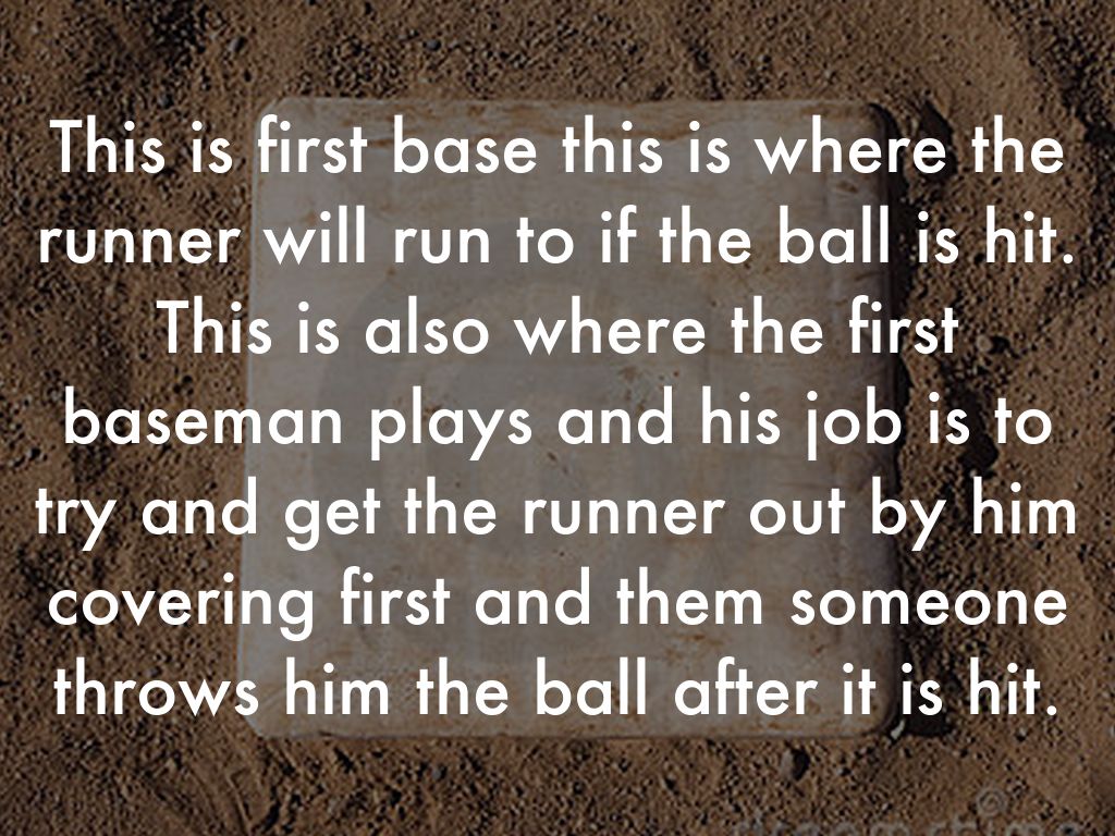 This is first base this is where the runner will run to if the ball is hit. This is also where the first baseman plays and his job is to try and get the runner out by him covering first and them someone throws him the ball after it is hit.