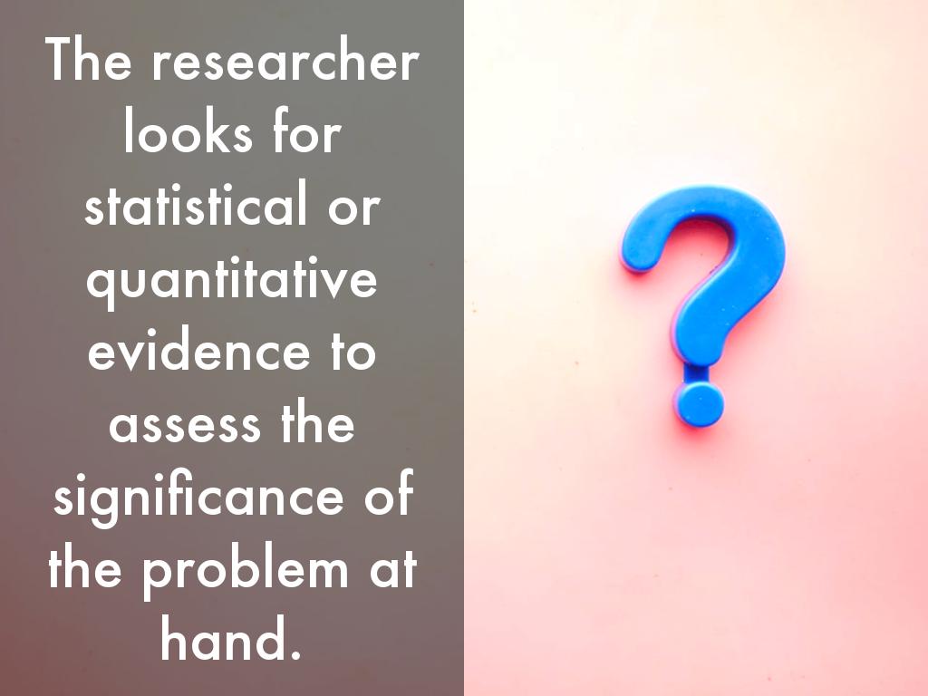 The researcher looks for statistical or quantitative evidence to assess the significance of the problem at hand.