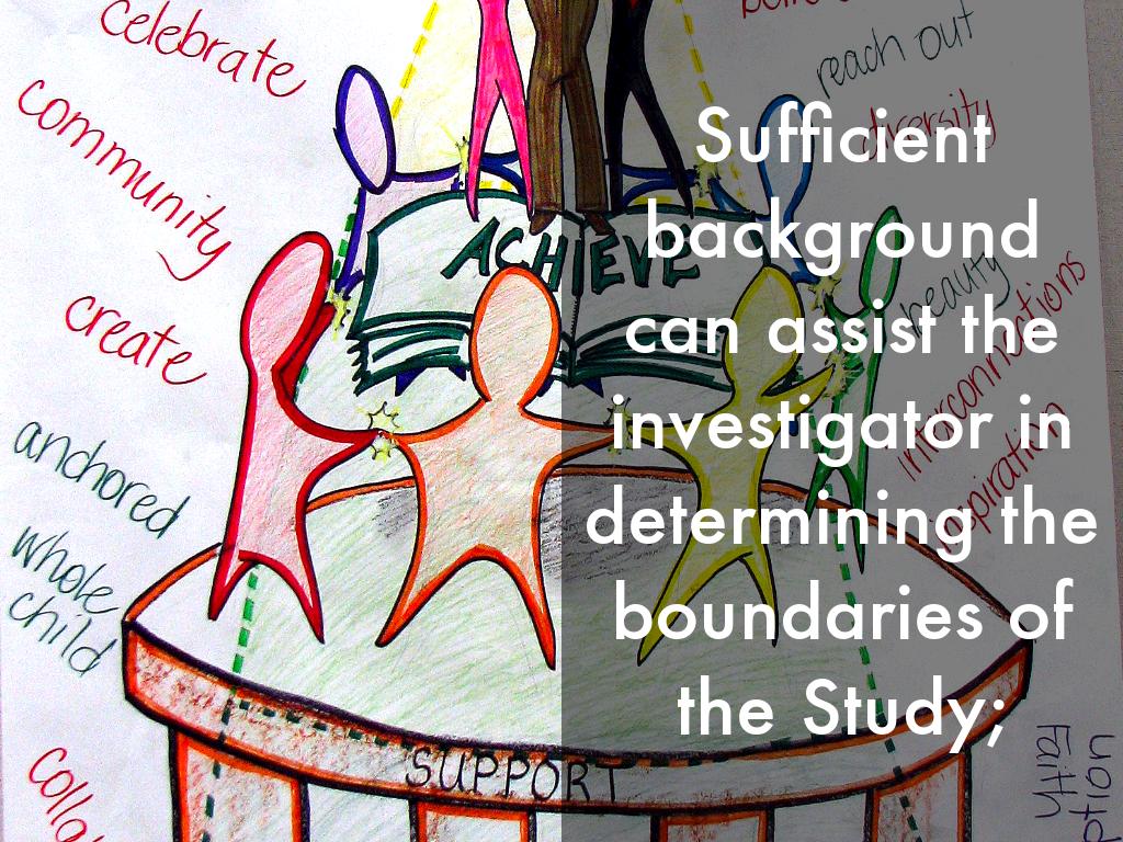 Sufficient background can assist the investigator in determining the boundaries of the Study;