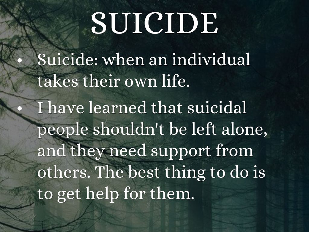 I have learned that I should listen and be supportive to those with depression and to look out for specific behaviors that give signs that they need help.