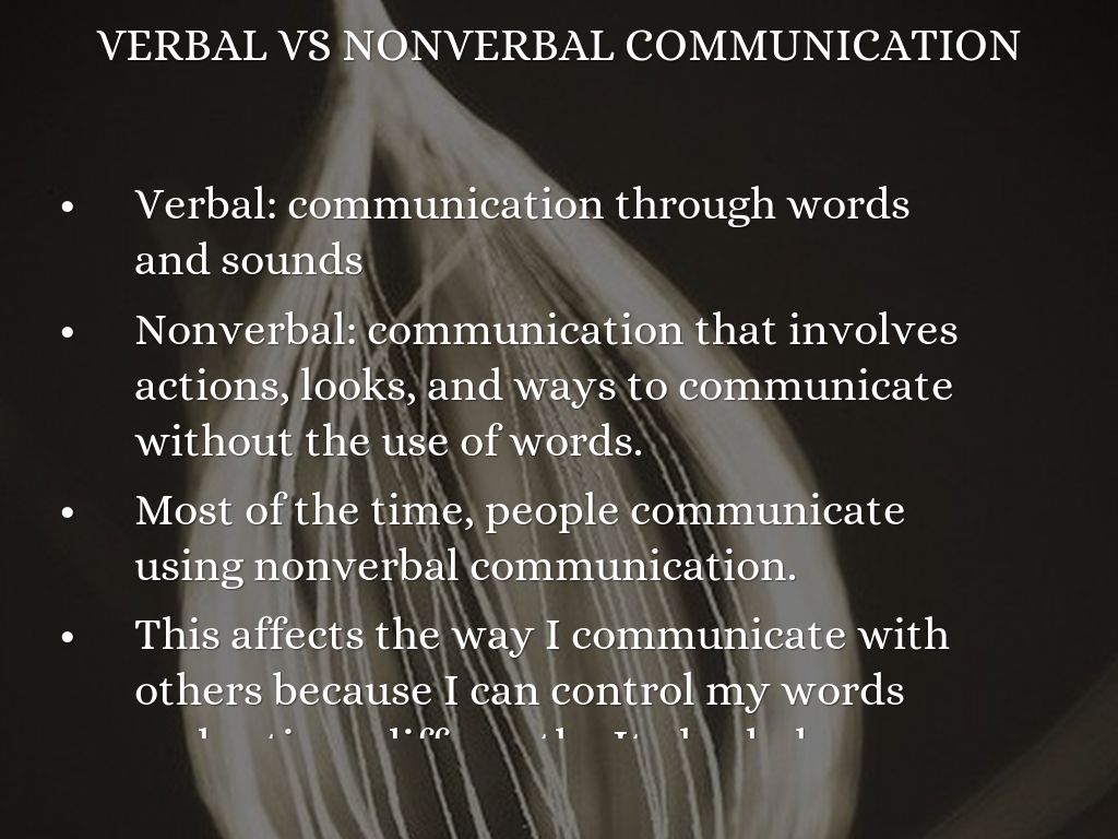 Nonverbal: communication that involves actions, looks, and ways to communicate without the use of words.
