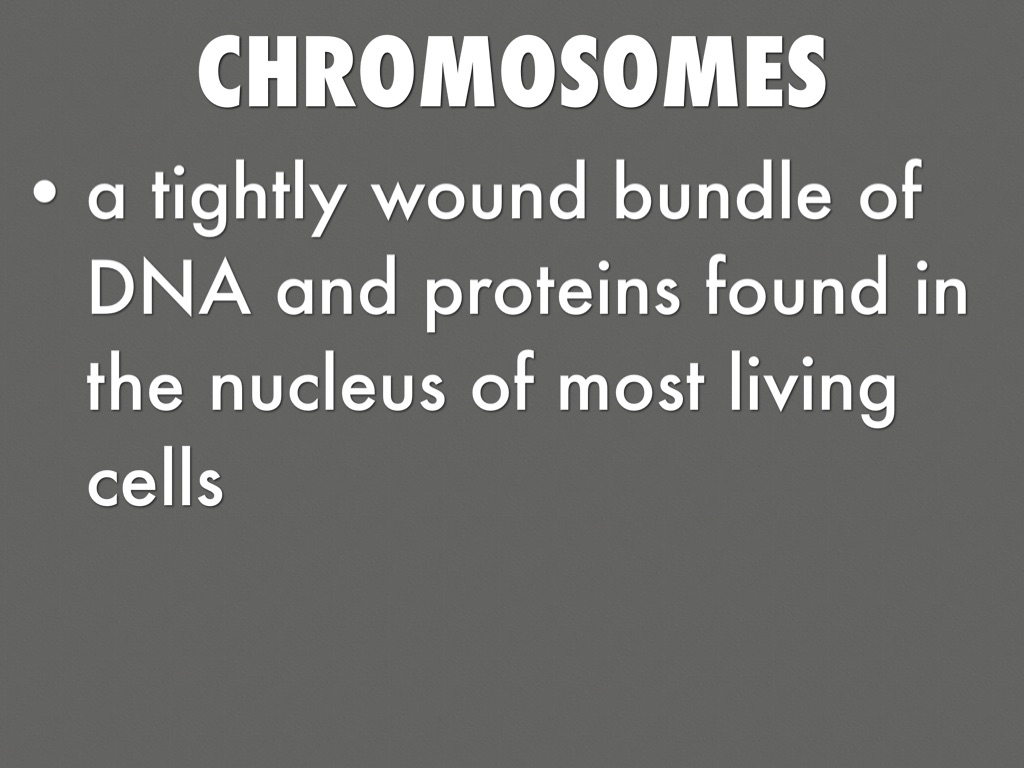 • a tightly wound bundle of DNA and proteins found in the nucleus of most living cells