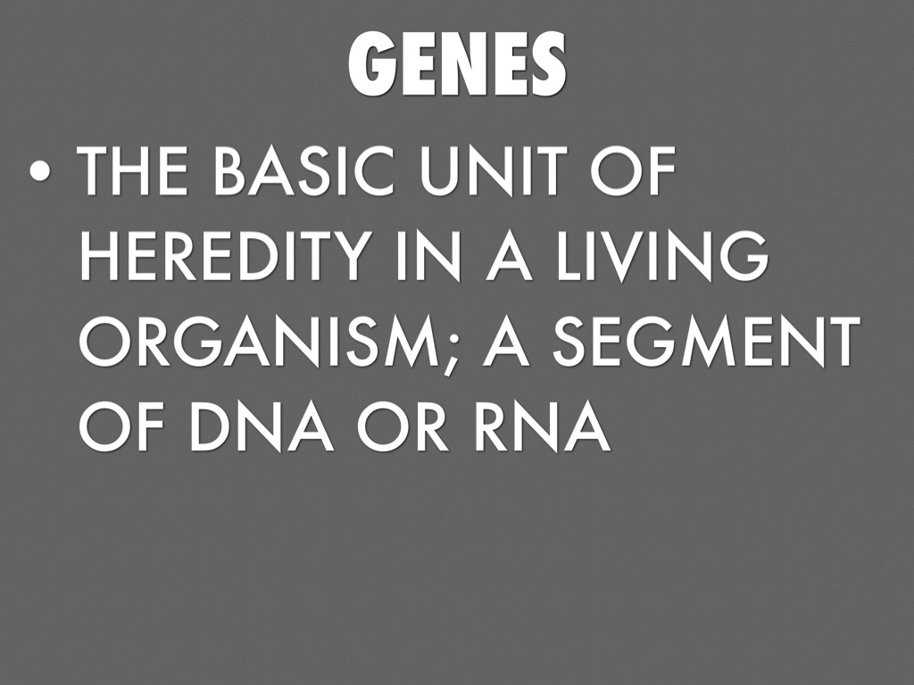 • THE BASIC UNIT OF HEREDITY IN A LIVING ORGANISM; A SEGMENT OF DNA OR RNA