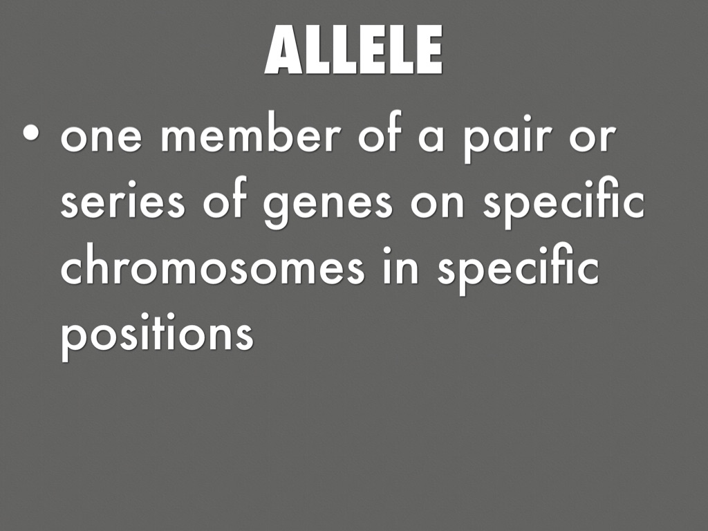 • one member of a pair or series of genes on specific chromosomes in specific positions