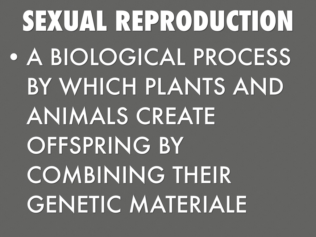 • A BIOLOGICAL PROCESS BY WHICH PLANTS AND ANIMALS CREATE OFFSPRING BY COMBINING THEIR GENETIC MATERIALE