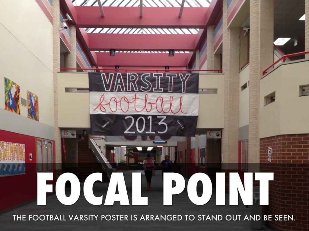 THE FOOTBALL VARSITY POSTER IS ARRANGED TO STAND OUT AND BE SEEN.