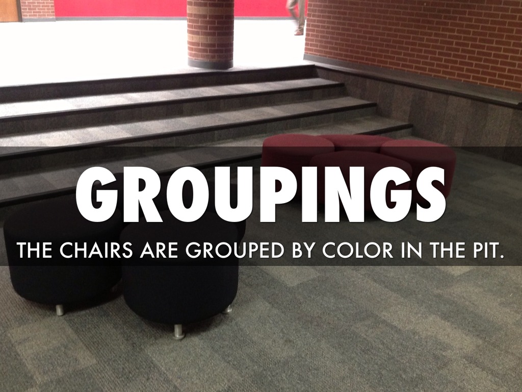 THE CHAIRS ARE GROUPED BY COLOR IN THE PIT.