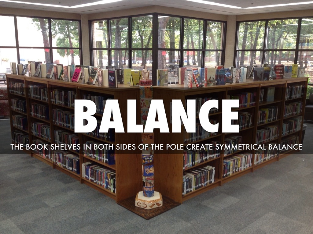 THE BOOK SHELVES IN BOTH SIDES OF THE POLE CREATE SYMMETRICAL BALANCE