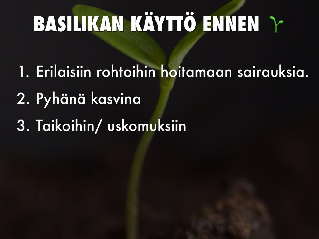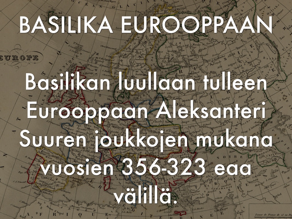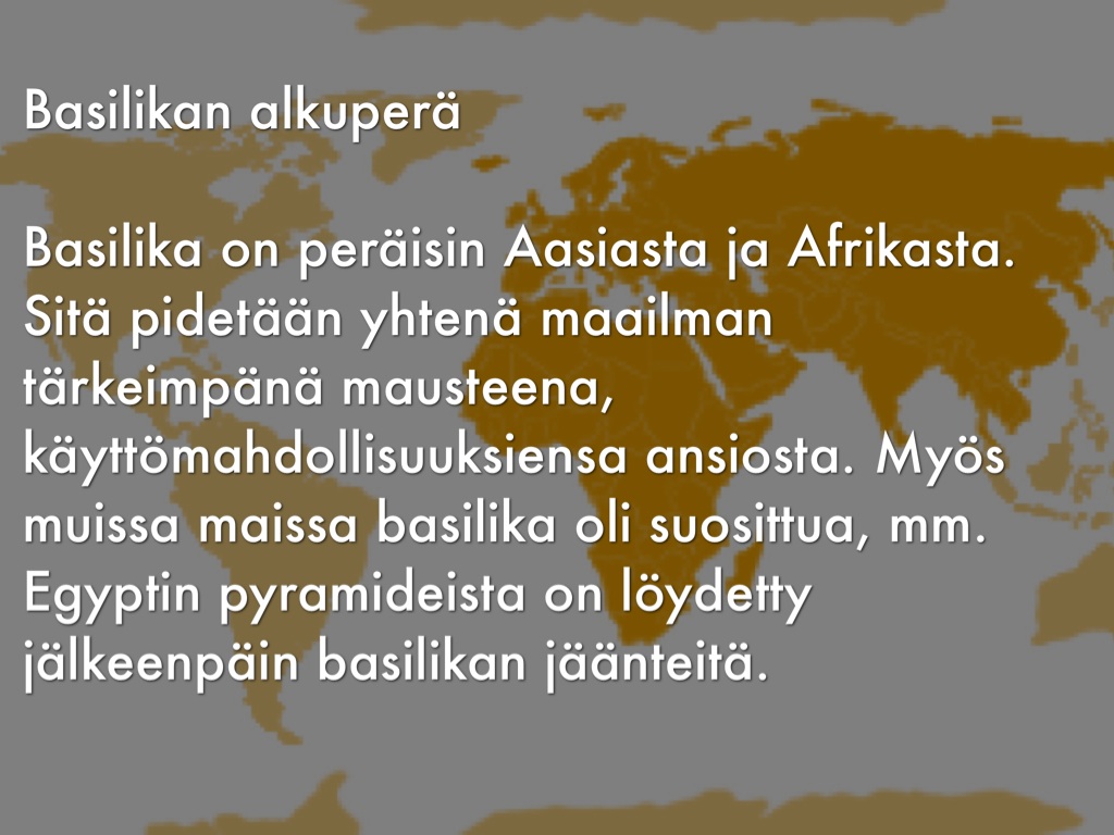 Basilika on peräisin Aasiasta ja Afrikasta. Sitä pidetään yhtenä maailman tärkeimpänä mausteena, käyttömahdollisuuksiensa ansiosta. Myös muissa maissa basilika oli suosittua, mm. Egyptin pyramideista on löydetty jälkeenpäin basilikan jäänteitä.