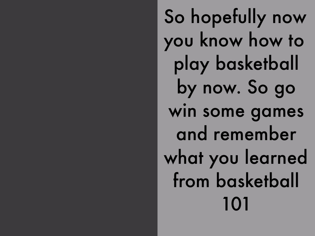 So hopefully now you know how to play basketball by now. So go win some games and remember what you learned from basketball 101