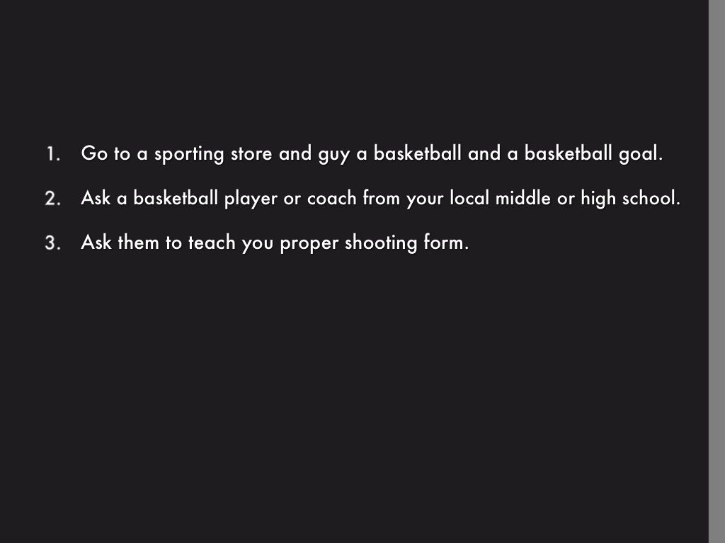 • Go to a sporting store and guy a basketball and a basketball goal.