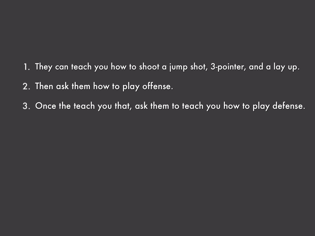 • Once the teach you that, ask them to teach you how to play defense.