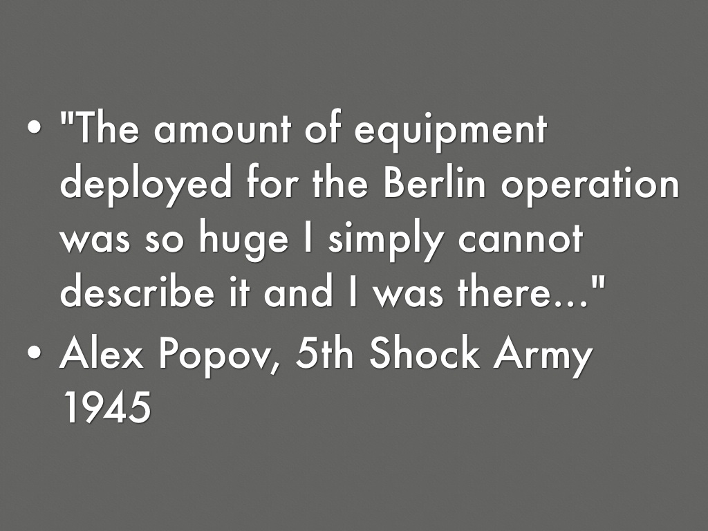 • "The amount of equipment deployed for the Berlin operation was so huge I simply cannot describe it and I was there..."