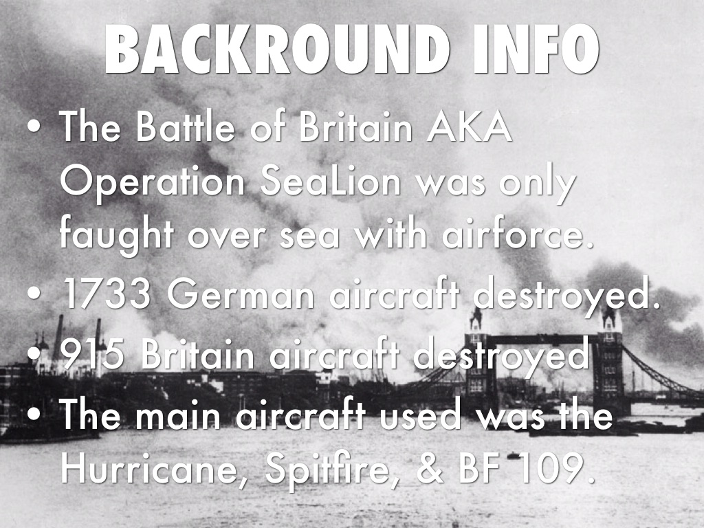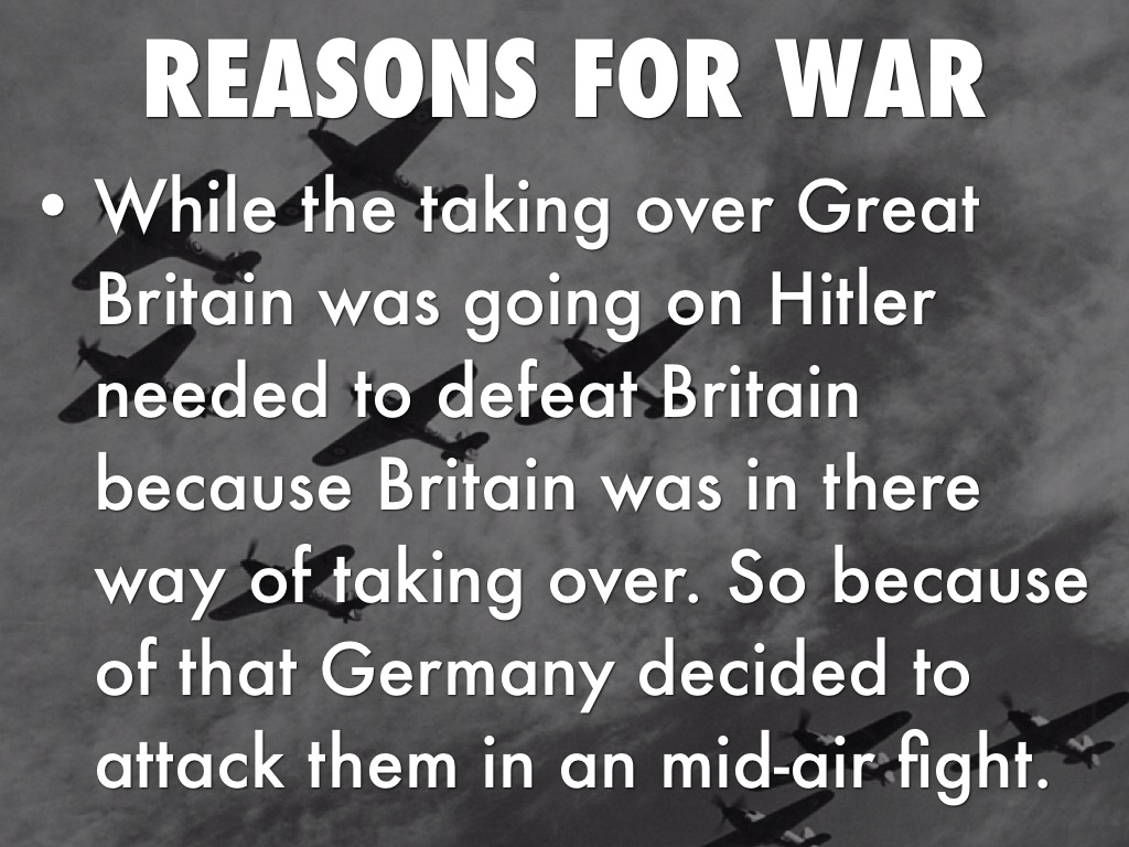 While the taking over Great Britain was going on Hitler needed to defeat Britain because Britain was in there way of taking over. So because of that Germany decided to attack them in an mid-air fight.