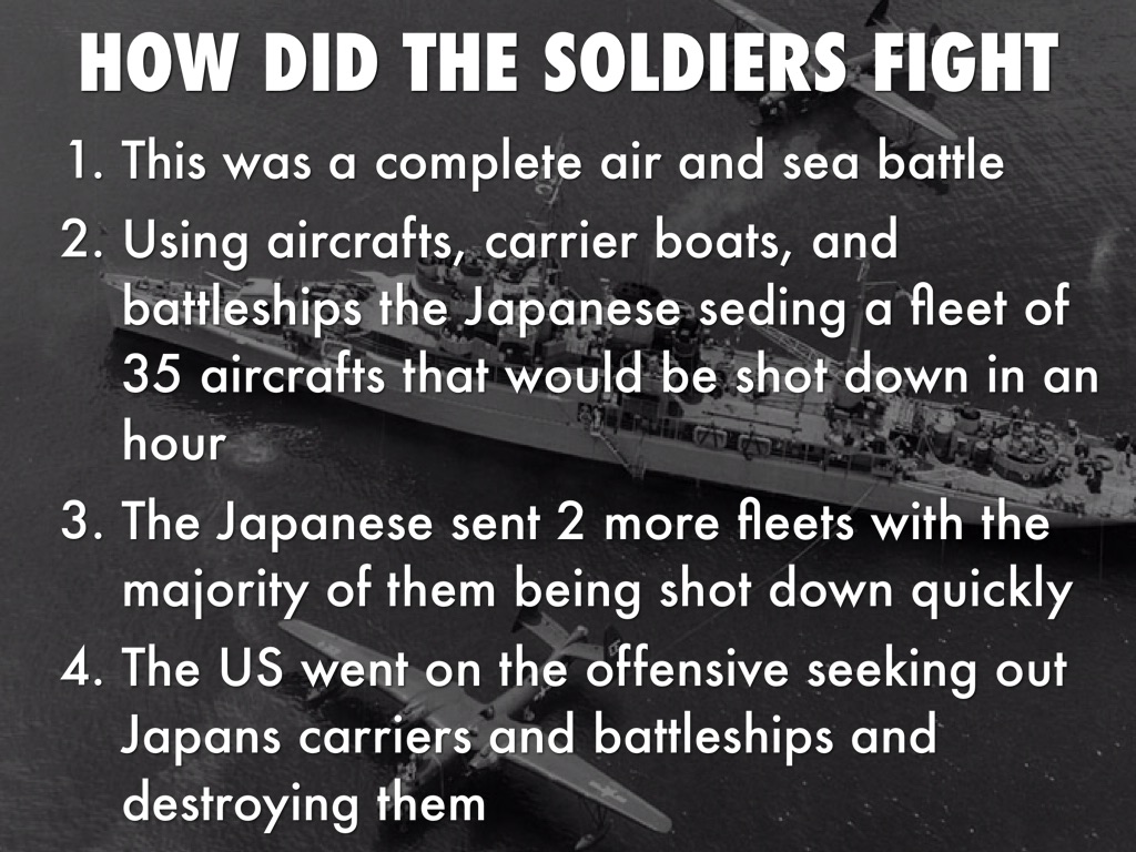 Using aircrafts, carrier boats, and battleships the Japanese seding a fleet of 35 aircrafts that would be shot down in an hour
