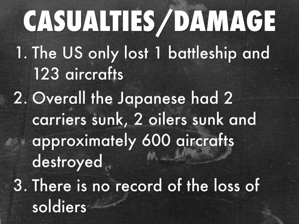 Overall the Japanese had 2 carriers sunk, 2 oilers sunk and approximately 600 aircrafts destroyed