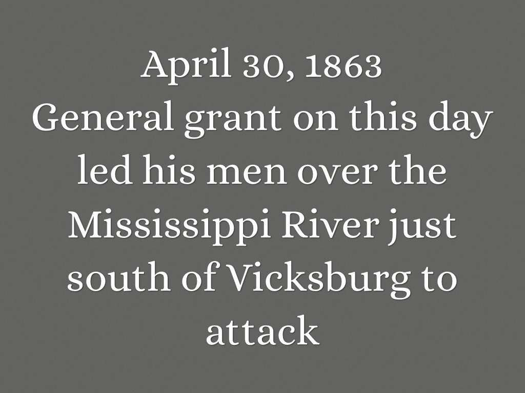General grant on this day led his men over the Mississippi River just south of Vicksburg to attack
