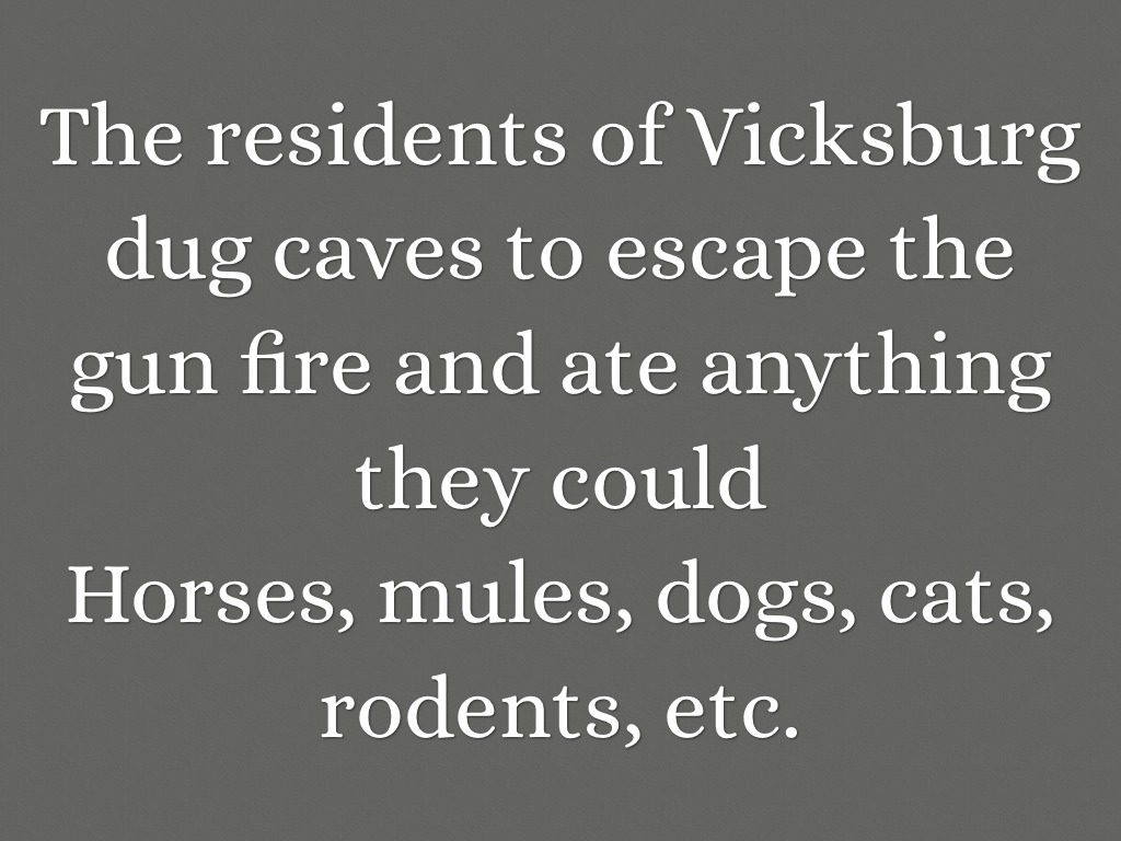 The residents of Vicksburg dug caves to escape the gun fire and ate anything they could
