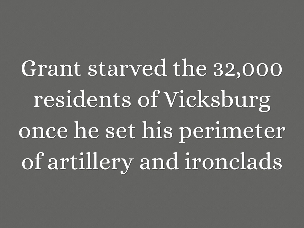 Grant starved the 32,000 residents of Vicksburg once he set his perimeter of artillery and ironclads