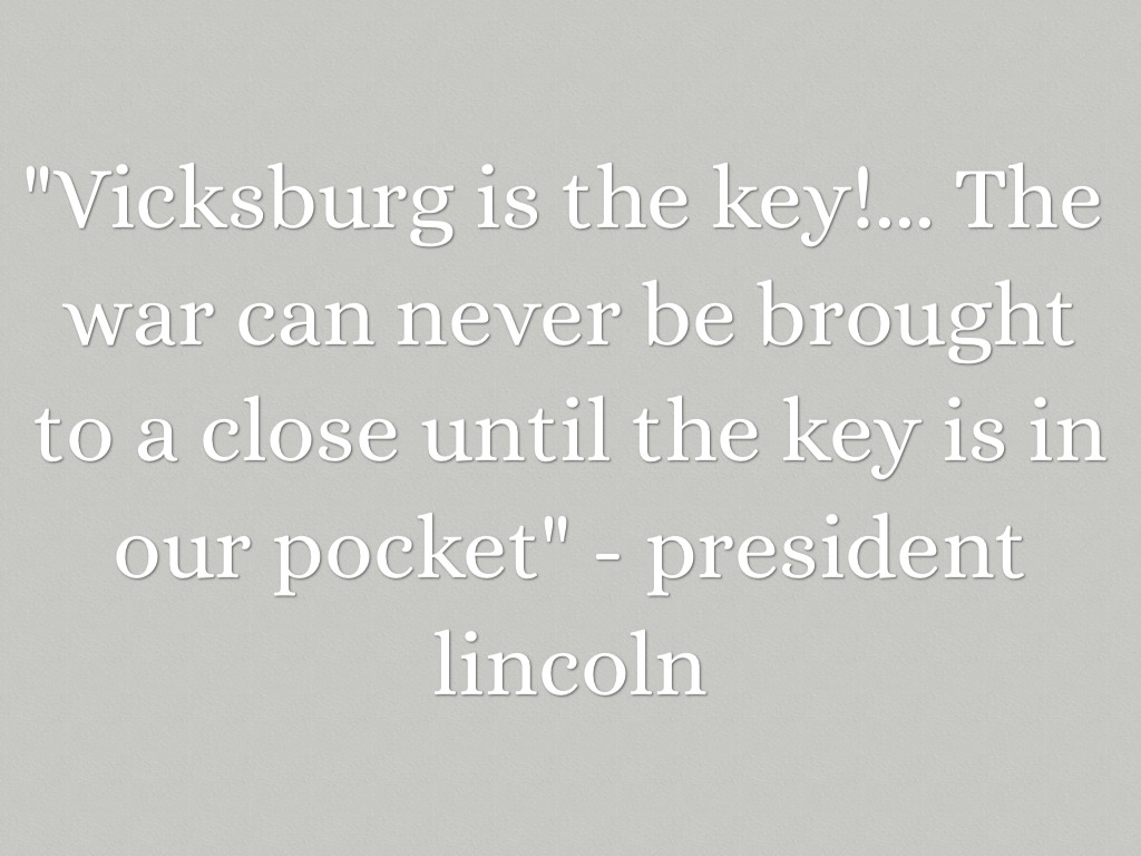 "Vicksburg is the key!... The war can never be brought to a close until the key is in our pocket" - president lincoln