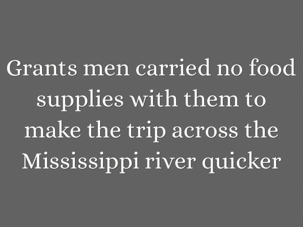 Grants men carried no food supplies with them to make the trip across the Mississippi river quicker