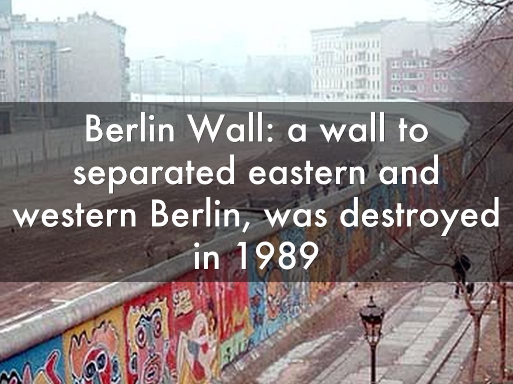 Berlin Wall: a wall to separated eastern and western Berlin, was destroyed in 1989