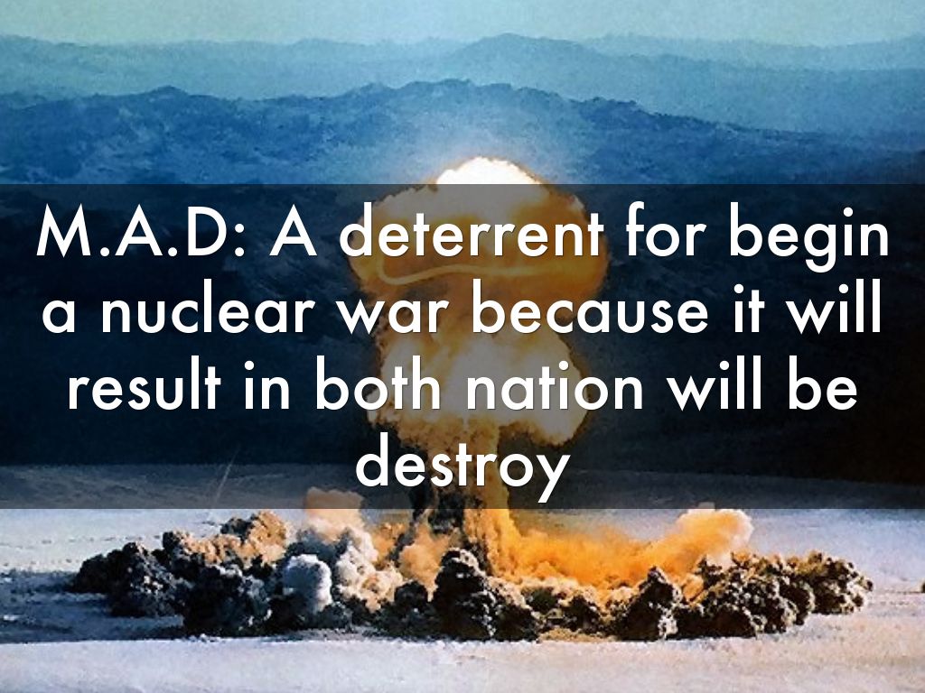 M.A.D: A deterrent for begin a nuclear war because it will result in both nation will be destroy