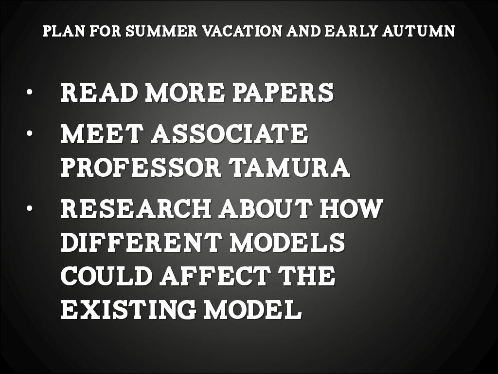 PLAN FOR SUMMER VACATION AND EARLY AUTUMN