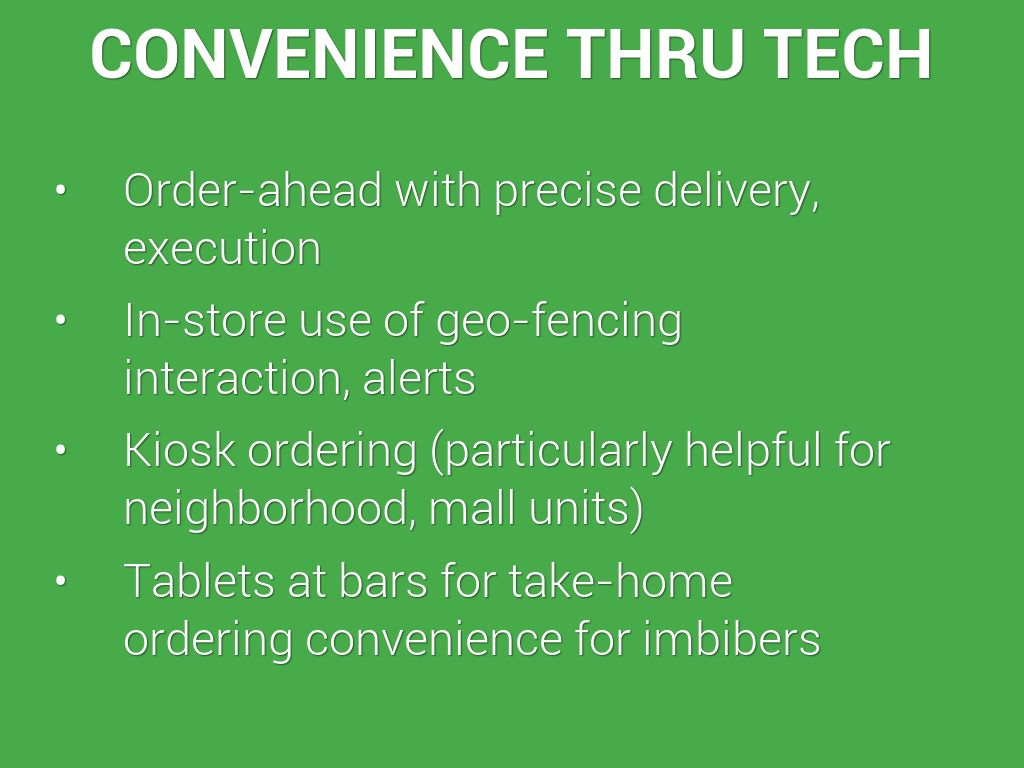Kiosk ordering (particularly helpful for neighborhood, mall units)