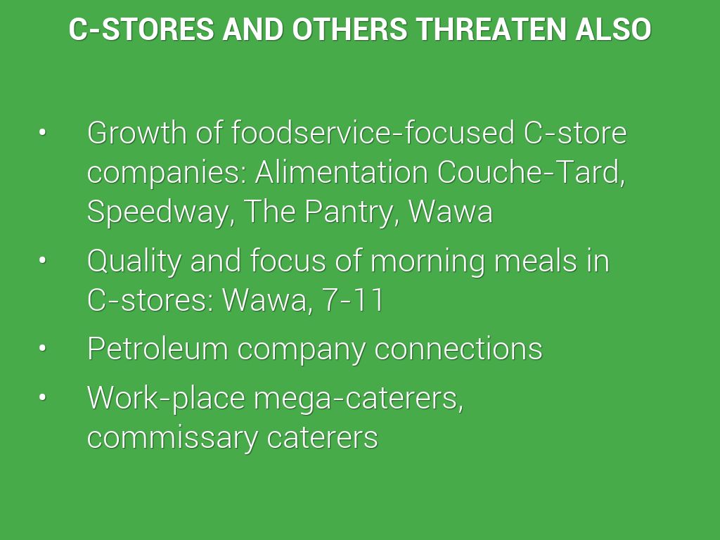 Growth of foodservice-focused C-store companies: Alimentation Couche-Tard, Speedway, The Pantry, Wawa