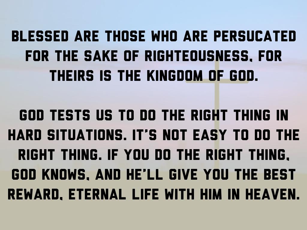 BLESSED ARE THOSE WHO ARE PERsUCATED FOR THE sake of righteousness, for theirs is the kingdom of God.