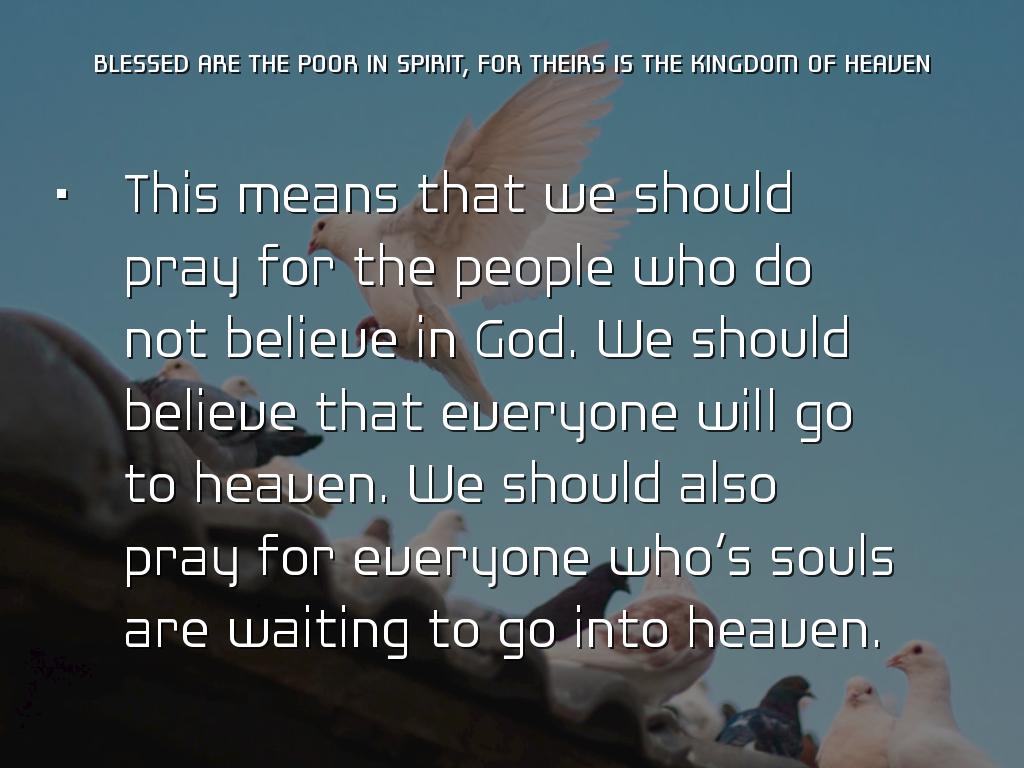 This means that we should pray for the people who do not believe in God. We should believe that everyone will go to heaven. We should also pray for everyone who’s souls are waiting to go into heaven.