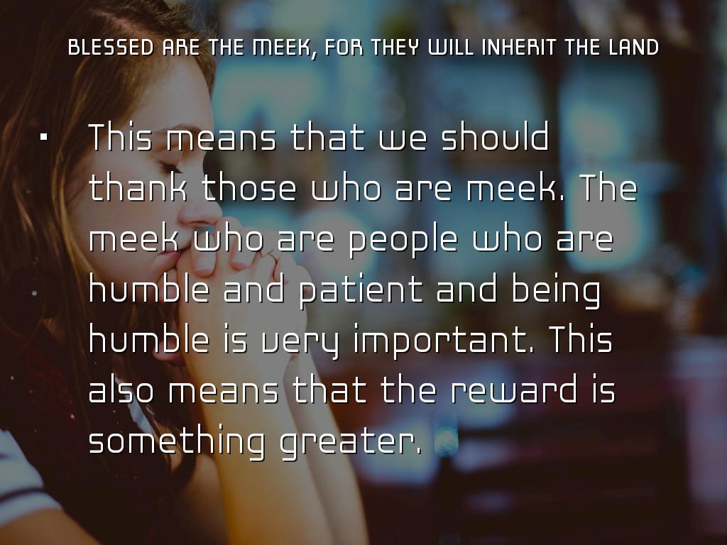 This means that we should thank those who are meek. The meek who are people who are humble and patient and being humble is very important. This also means that the reward is something greater.