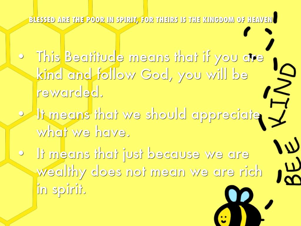 This Beatitude means that if you are kind and follow God, you will be rewarded.
