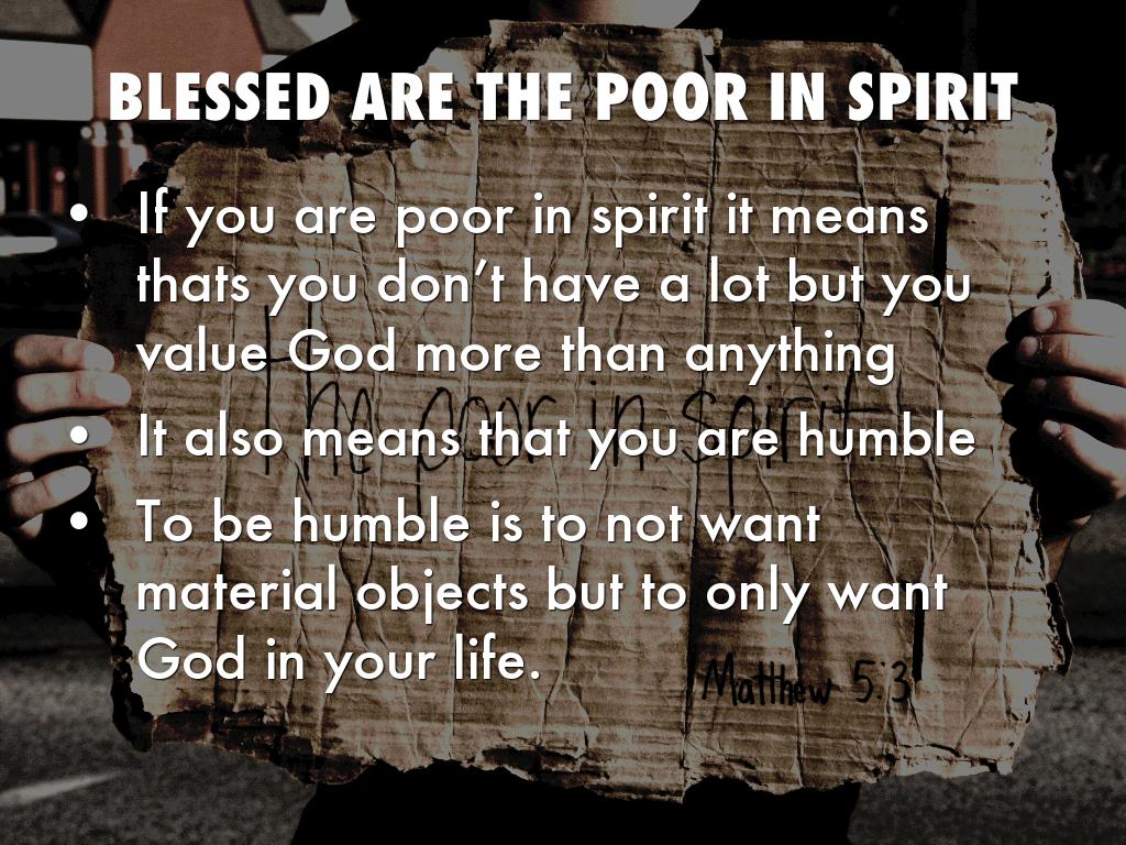 If you are poor in spirit it means thats you don’t have a lot but you value God more than anything